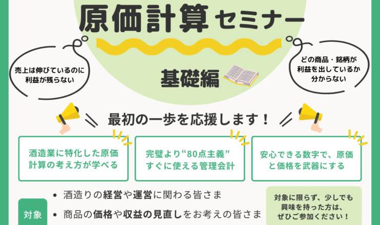 📢お酒づくりをされている皆さまへ 「原材料費が上がって、どう売価を決めればいいかわからない…」そんなお悩み、ありませんか? ...
